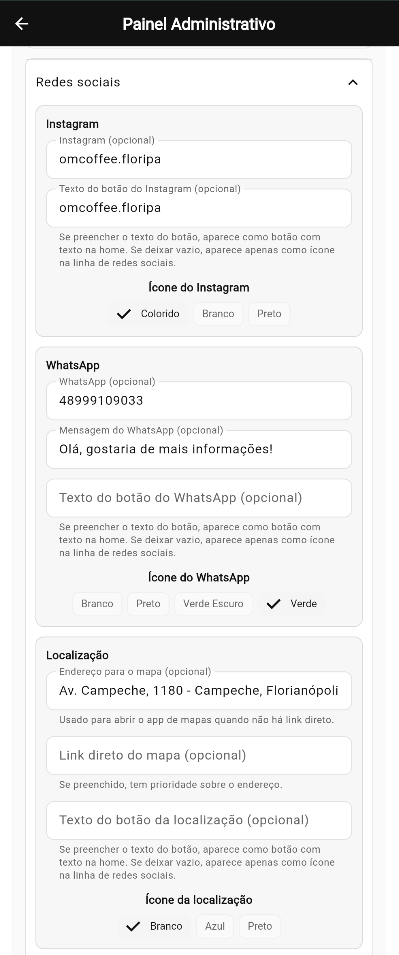 O painel administrativo é o espaço onde você controla tudo o que aparece para o cliente ao acessar o espaço digital do estabelecimento.