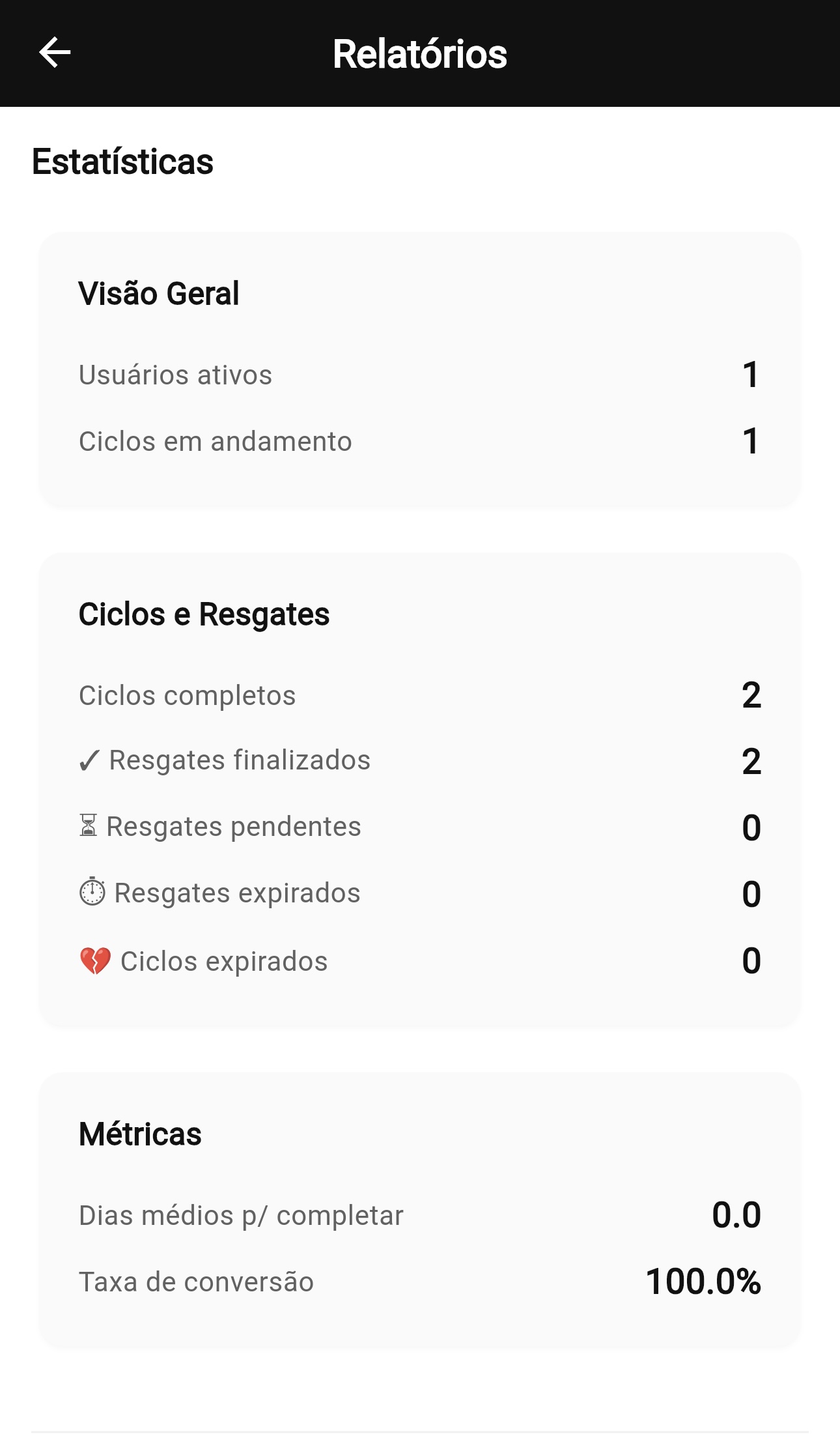 Os relatórios ajudam a entender o desempenho da fidelidade e identificar tendências.